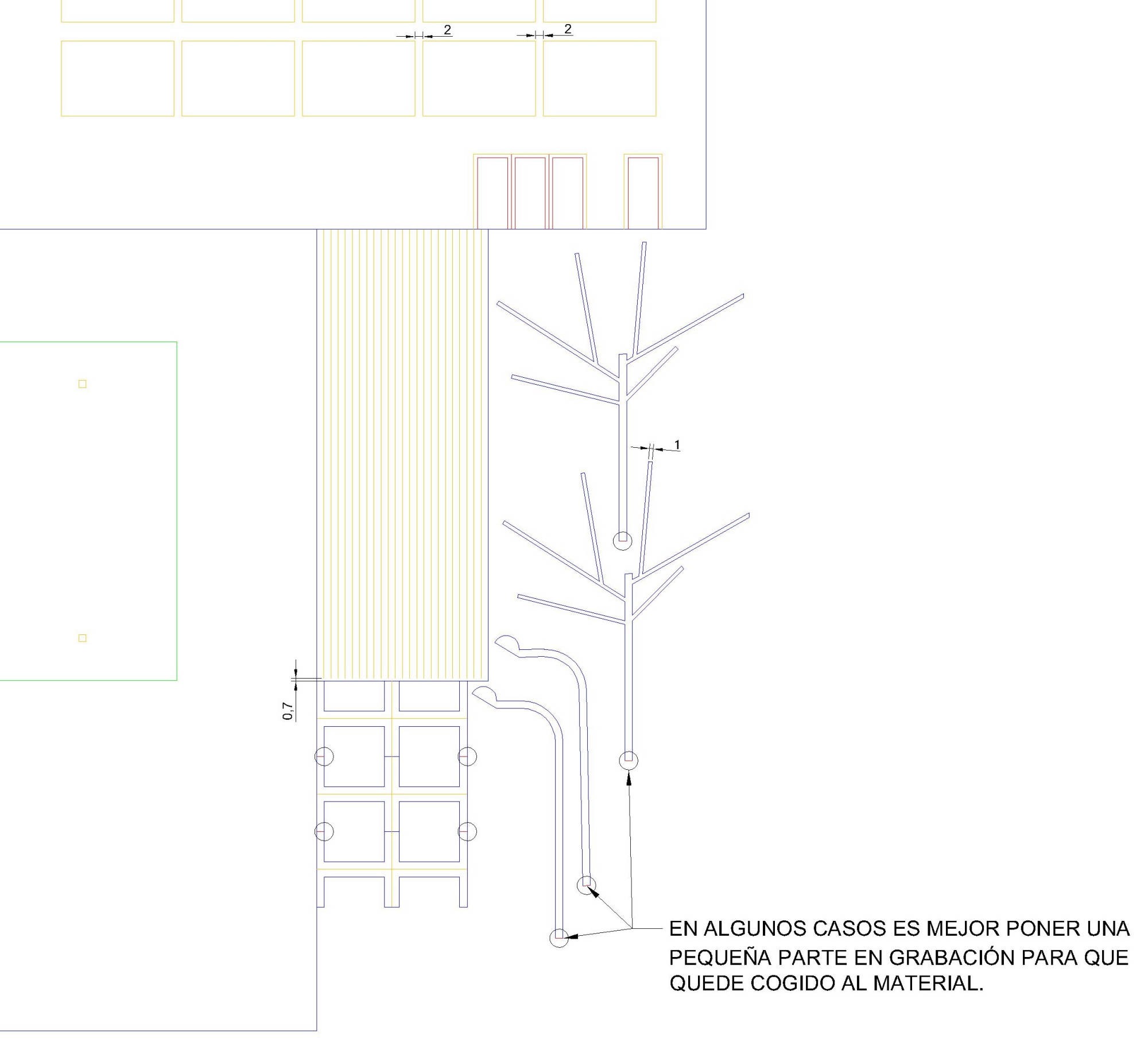 8.- PARA PODER RECUPERAR MEJOR LAS PIEZAS, TENERLAS AGRUPADAS Y EVITAR QUE SE CUELEN POR LA REJILLA. SE HACE UN DESFASE DE LÍNEA. SE USA LA ORDEN, EQDIST O DESFASE, CON UNA DISTANCIA DE 0,7 MM.
